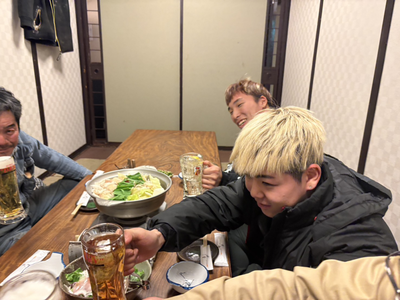 もつ鍋とサムギョプサルの鍋を囲んで、盛り上がりました(笑)